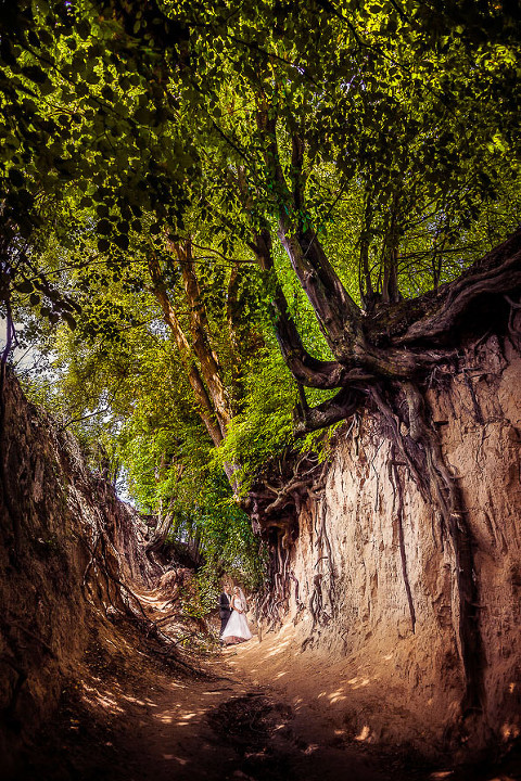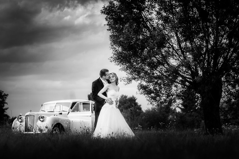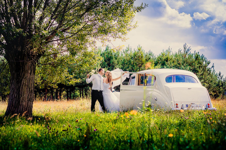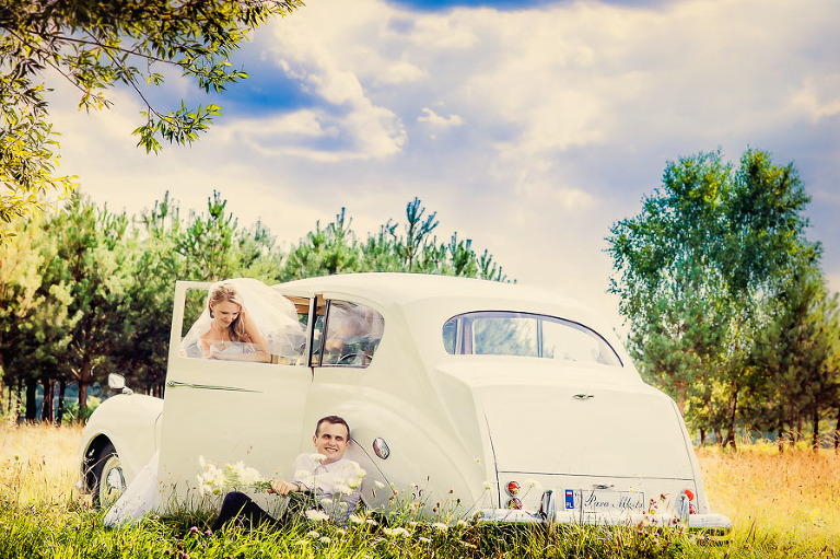 Z Izą i Marcinem umówieni byliśmy na sesję plenerową tuż po ślubie. Pomysłów było kilka i ostatecznie zdecydowaliśmy się na wyjazd do Janowca oraz do wąwozów w  Kazimierzu Dolnym. Zakończenie sesji zaplanowałem już podczas rozmowy z właścicielem pięknego samochodu Austin Princess z 1959r Leszkiem Skrzeczyskim, który tego dnia zapewniał przejazdy Pary Młodej.