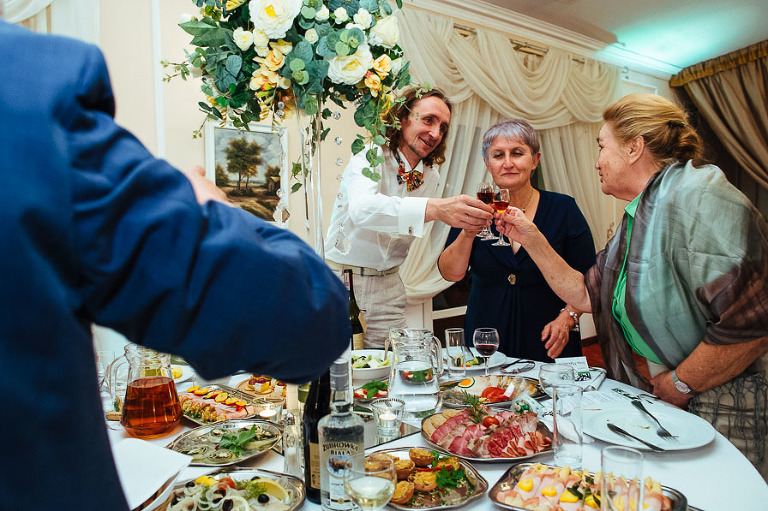 Miałem wielką przyjemność towarzyszyć im w tym wspaniałym dniu od wczesnych godzin przygotowań. Ślub polsko-rosyjski okazał się ostatecznie niemal multinarodowym, gdyż gości z Polski było bardzo niewielu.