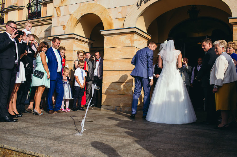 Reportaż ślubny we Włocławku jaki wykonałem dla Oli i Michała dał mi niesamowite chwile radości. Kiedy pojawiłem się w domu Oli z okien mieszkania było widać świątynię, obok piękny Pałac Bursztynowy czyli miejsce przygotowań Michała i przyjęcia weselnego. Wszystko było w niedalekiej odległości co wcale nie jest ułatwieniem a wręcz wymaga dużego reżimu czasowego by ze wszystkimi etapami zdjęć zdążyć na czas.