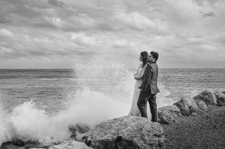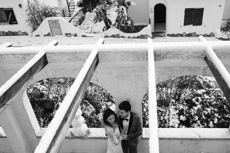 Ostatecznie w trakcie realizacji sesji Kasia i Szymon chyba 4 lub 5 razy ubierali się i rozbierali ze swoich ubrań ślubnych. Było to konieczne by ogrzać się nawet i po 10 minutowym wyjściu na zewnątrz przy śnieżnej aurze. Przerażająco zimny wiatr, deszcz, śnieg – nie była to prosta i łatwa sesja.