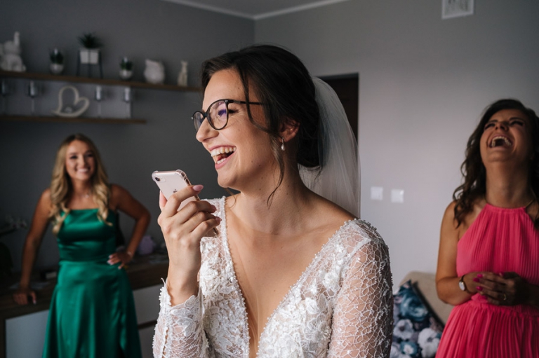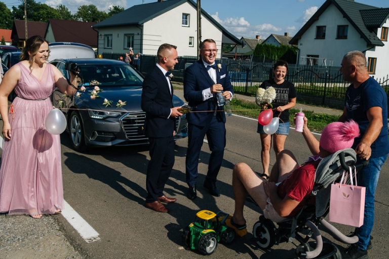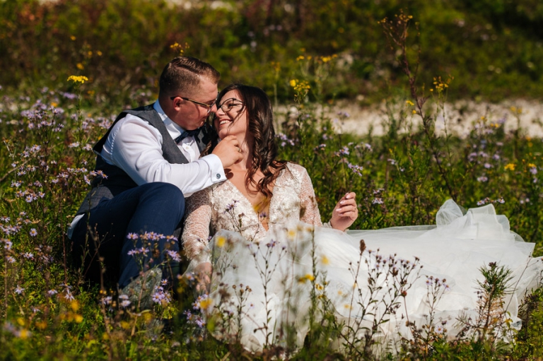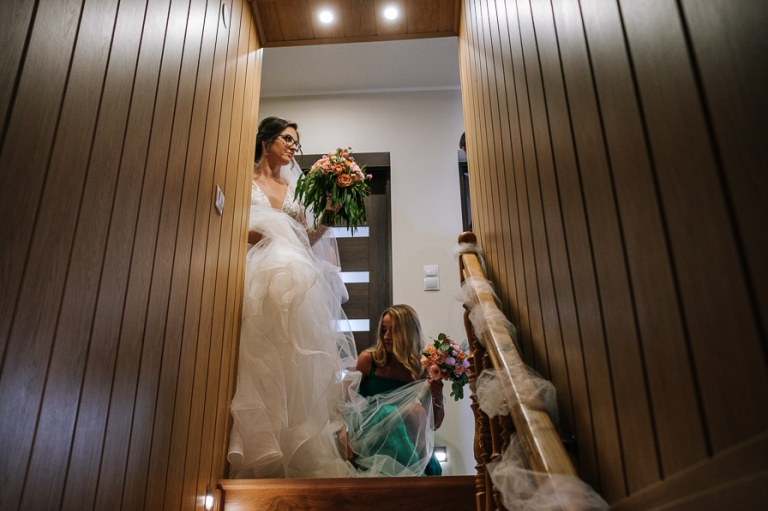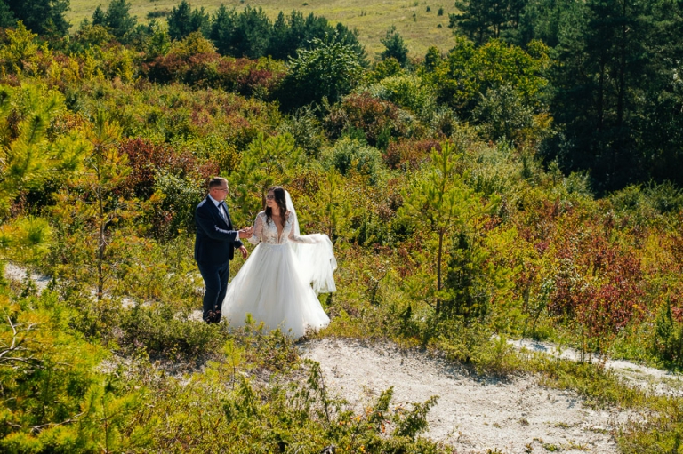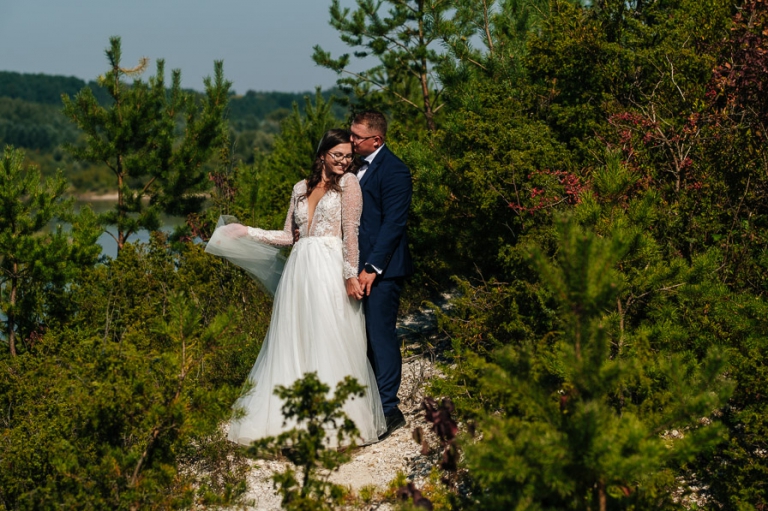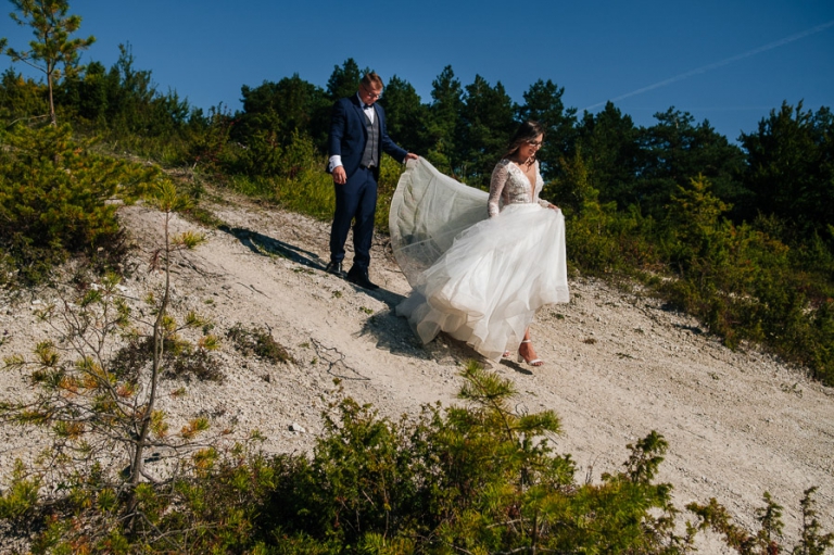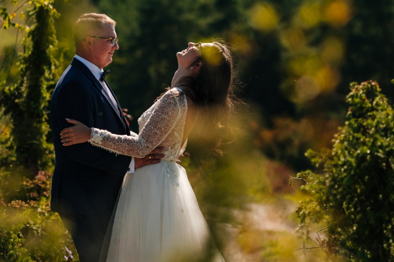Chcąc wrócić wspomnieniami do tych dni, gdy miałem okazję pracować dla Mileny i Bartosza mam przed oczami wciąż jedną scenę. Niezależnie od sytuacji wciąż byli uśmiechnięci. Oczywiście łatwo o uśmiech gdy wszystko wokoło idzie zgodnie z planem. Bartosz w czasie sesji dość mocno odczuł ślubne buty na stopach, które nie dając żadnych objawów w dniu ślubu, w czasie sesji skutecznie odejmowały swobody w kolejnych drogach jakie pokonywaliśmy przy sesji ślubnej.